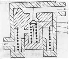 研究表明,當(dāng)前輪制動(dòng)壓力p1較小時(shí),后輪制動(dòng)壓力p2允許和p1相等。當(dāng)p1較大時(shí),應(yīng)使p2小于p1。為此可采用定比減壓閥,該閥的結(jié)構(gòu)原理圖見圖4.16-6。