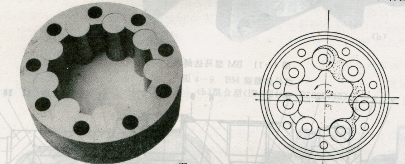 BM型軸配流擺線馬達支承輸出軸的為一般滾球軸承,因而輸出軸不宜承受外加的徑向負荷和過大的軸向負荷;BMD型馬達主軸因未用軸承,因此,輸出軸只允許承受較小的徑向負荷;若主軸改用高精度圓錐滾柱軸承進行支承,就發(fā)展成輸出軸能夠承受較大的徑向負荷和軸向負荷的BMF型馬達、BM型、BMD型和BMF型三種馬達的內部構造和工作原理完全一致。圖1為南京液壓機械制造廠生產的BM型馬達、BMD型馬達和BMF型馬達的有關相片