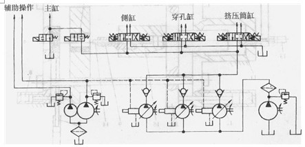圖2擠壓機(jī)簡(jiǎn)化液壓系統(tǒng)圖