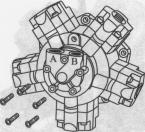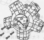 ⑦馬達(dá)可按任意方向安裝。如馬達(dá)安裝時(shí)發(fā)現(xiàn)進(jìn)出油口位置不好,可按圖所示的步驟調(diào)轉(zhuǎn)馬達(dá)進(jìn)出油口的角度:按住通油盤不放(整個(gè)過(guò)程都必須按緊通油盤,不允許放手),擰出5個(gè)安裝螺栓,旋轉(zhuǎn)到需要的角度,找到相應(yīng)的螺栓孔,均勻擰緊螺栓即可。