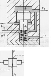 由式(6-19)可見,在A1/A2 -定時,該閥能維持進(jìn)、出口壓力間的定比關(guān)系,而改變閥心