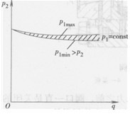 減壓閥的P2-q特性曲線如圖6-30所示。減壓閥進(jìn)口壓力Pi基本恒定時,若通過的流量g增加,則閥口縫隙XR加大,出口壓力略微下降。先導(dǎo)式減壓閥出油口壓力的調(diào)整值越低,它受流量變化的影響就越大。
