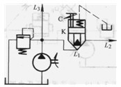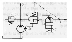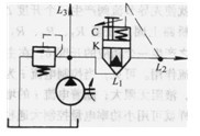 圖3. 4-11中插裝閥K在L1、L2間形成節(jié)流回路。插裝閥處于常開(kāi)狀態(tài)。此類插裝閥帶有節(jié)流錐,調(diào)節(jié)限位螺栓C就可調(diào)節(jié)插裝閥的開(kāi)啟量,從而調(diào)節(jié)回路的節(jié)流量。