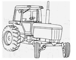 農(nóng)用拖拉機(jī)與牽引或懸掛式農(nóng)機(jī)具配套可完成耕地、整地、播種、施肥、植保等多種作業(yè)。農(nóng)用迪爾4450拖拉機(jī),其外型如圖4 .1-1所示。