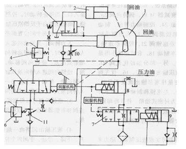 7-液壓負(fù)荷控制閥。8-液壓助力缸9-減震阻尼裝置10-下降速度調(diào)節(jié)閥  11-流量控制閥