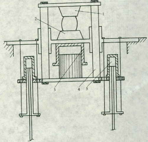 鍛機缸壓  鍛壓終了時,主液壓缸5處于高壓狀態(tài),為了防止沖擊,鍛壓回程前必須緩慢卸壓。這時橋臂1、3、4液阻為無限大,而橋臂2液阻必須處于高阻值狀態(tài)。為了提高生產(chǎn)率,在不產(chǎn)生沖擊的條件下應(yīng)使卸壓過程盡可能縮短,因而采用了兩段卸壓過程。這一功能是由可變液阻2.2、插裝閥2.3和液控?fù)Q向閥2.4共同完成的。在高壓卸壓狀態(tài)時,2.4使2.3關(guān)閉,插裝閥2.1上腔的壓力油只能經(jīng)2.2流出,使2.1緩慢開啟以便液壓缸5緩慢卸壓;當(dāng)壓力低到一定值后,2.4使2.3開起,液阻2.2被短路,結(jié)果插裝閥2.1快速開啟,加快卸壓過程。