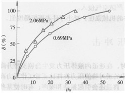 石油基液壓油在靜止狀態(tài)下空氣的溶解度與時間的關系如圖3-37所示,它反映了溶解