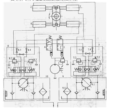 2)該系統(tǒng)采用多裕度設(shè)計(jì),系統(tǒng)的可靠性高。雙泵1、2中即使有一泵損壞,系統(tǒng)仍能正常工作,并用閥3、4防止兩泵干擾,若閥6損壞,閥7、8關(guān)閉,可改由閥5控制。