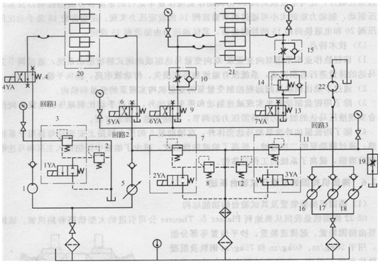 圖6 -15輪對軸承壓裝機液壓系統(tǒng)原理圖