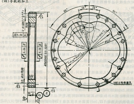 (2)對基圓進行精確分度。當導軌曲線凹凸交接的過渡段在1~1.5°時,分度精度取±3’~±5’。