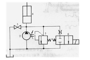 液壓泵2由發(fā)動機(jī)驅(qū)動,當(dāng)電磁閥6失電時,閥關(guān)閉,來自泵2的油不經(jīng)過閥3直接進(jìn)入舉升缸4,并使舉升缸4中活塞桿伸出,頂車廂升起卸貨。缸4也隨舉升過程而變得傾斜。當(dāng)開關(guān)閥3打開時,來自泵2的油通過閥3回油箱1,車廂靠自重下降,舉升缸排出的油也經(jīng)過閥3與油箱相通。