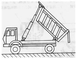 汽車舉升機(jī)構(gòu)是指可使車廂后傾(見圖5a>或側(cè)傾(見圖5b),以便完成自卸動作。噸位較小的車用液壓缸直接頂升。5 - 15t的重型汽車除有頂升液壓缸外還有機(jī)械杠桿力放大系統(tǒng)。