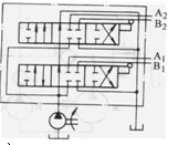 圖1. 3-7為串聯(lián)一獨聯(lián)系統(tǒng)。多路閥A控制的執(zhí)行機構互相串聯(lián),多路閥B控制的執(zhí)行機構也互相串聯(lián),這兩個串聯(lián)系統(tǒng)之間則由閥1使它們相獨聯(lián)。這樣在B閥操縱的執(zhí)行機構動作時,不致因誤操作A閥而引起A閥控制的執(zhí)行機構誤動作導致事故。