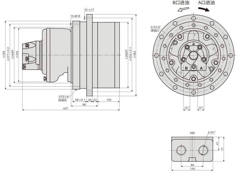????? YK系列殼轉(zhuǎn)傳動(dòng)裝置是我公司專門為煤礦掘進(jìn)機(jī)開發(fā)的新型、高效的掃煤驅(qū)動(dòng)裝置,解決了掃煤耙爪在低速運(yùn)行狀態(tài)下的爬行問題,大大提高了掘進(jìn)機(jī)掃煤裝置的運(yùn)行穩(wěn)定性。YK系列殼轉(zhuǎn)傳動(dòng)裝置由高效率柱塞液壓馬達(dá)以及高效率端面配流液壓馬達(dá)加減速機(jī)構(gòu)成,結(jié)構(gòu)緊湊,外形美觀,可連續(xù)長(zhǎng)時(shí)間工作。